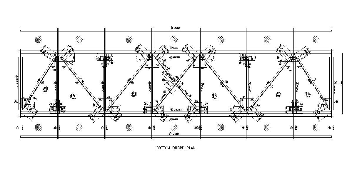 A bottom chord plan detail is given in this 2D Autocad DWG drawing file. Download the 2D AutoCAD file.