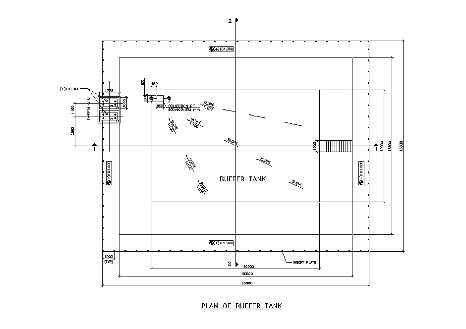 Plan of buffer tank detail is given in this 2D Autocad DWG drawing file. The length and breadth of the buffer tank is 24m and 19m respectively. Collection pit size 600x600x300mm. Slope is 1:100. Other details are given in this 2D autocad file. Download the 2D Autocad drawing file. Thank you for downloading the 2D Autocad file and other CAD program files from our website.