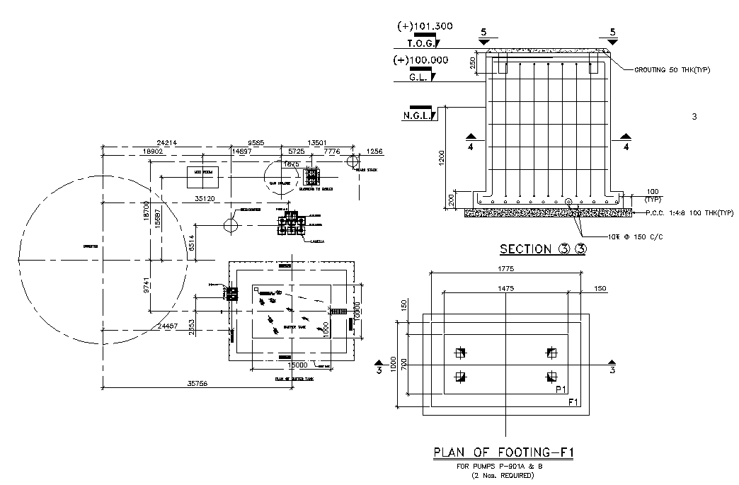 Plan of footing for pump details has given in this 2D Autocad DWG drawing file. Download the 2D AutoCAD file.