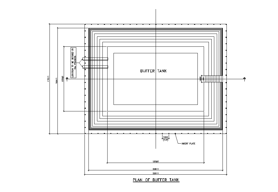 Tope view plan of buffer tank details are given in this 2D Autocad DWG drawing file. Section of buffer tank is provided. The length and breadth of the buffer tank is 22m and 17m respectively. Insert plate is provided around the buffer tank. Thank you for downloading the 2D Autocad file and other CAD program files from our website.