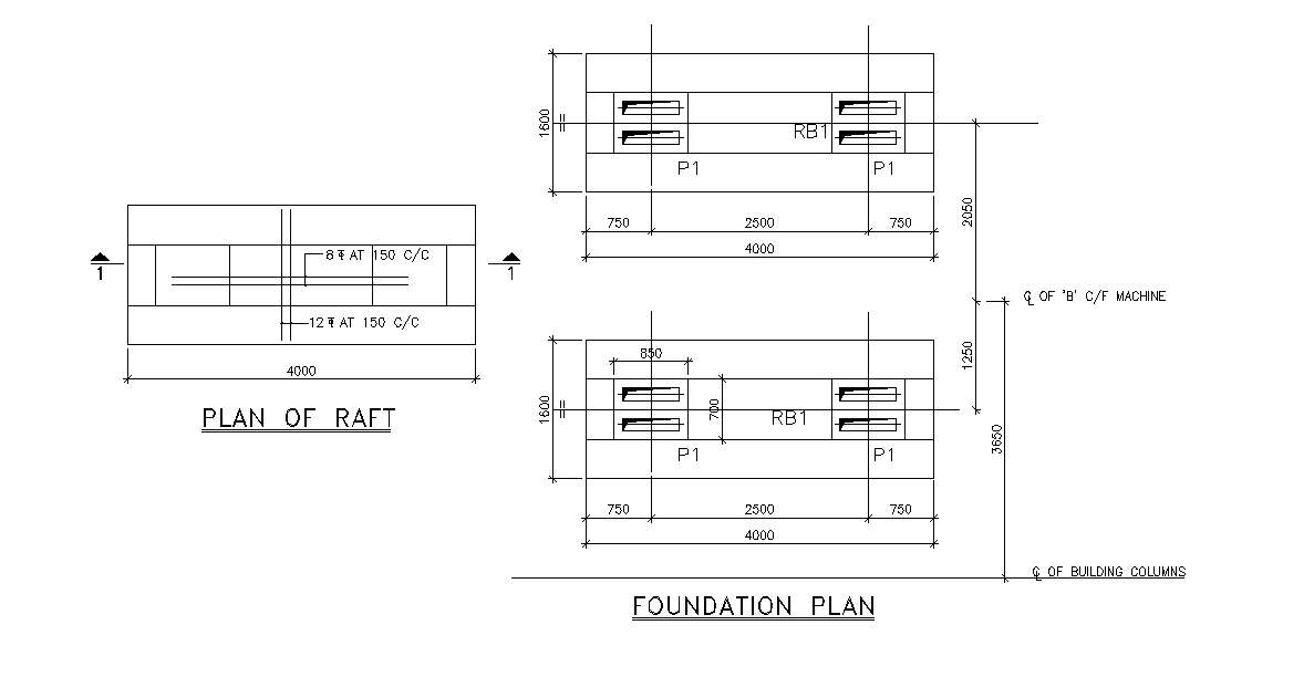Foundation and Raft plan details details are given in this 2D Autocad DWG drawing file. Download the 2D Autocad file.