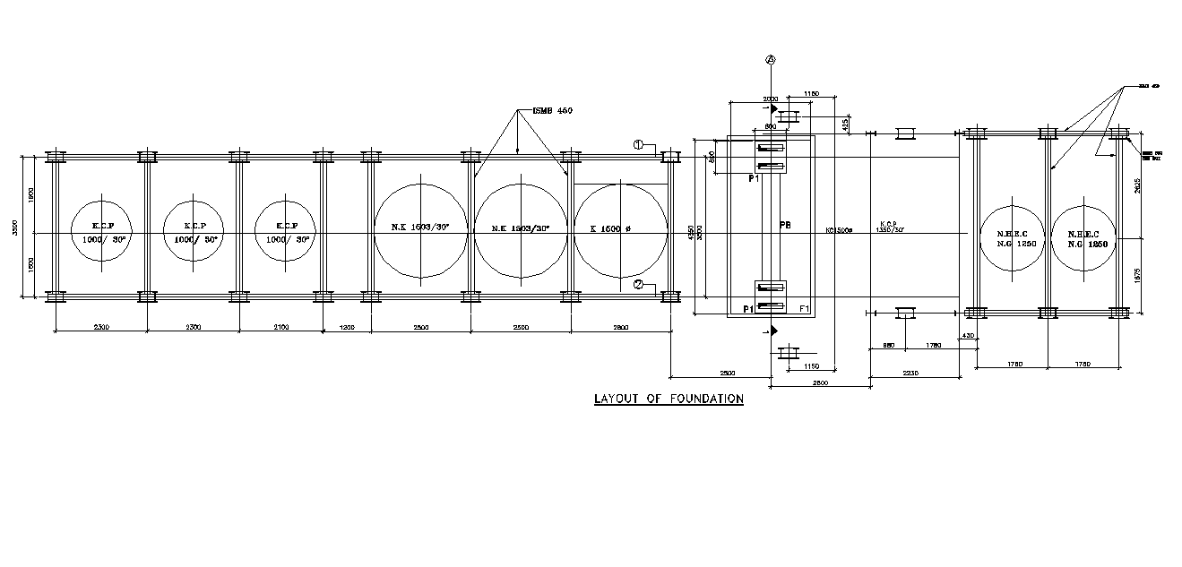 Massecuite curing centrifugal foundation layout details are given in this AutoCAD 2D DWG drawing file. ISMB 450 and 250 sections are used. Measurements are given clearly and length of each circular is mentioned. Download the 2D AutoCAD DWG drawing file. Thank you for download the 2D AutoCAD DWG drawing file and other CAD program files from our website.