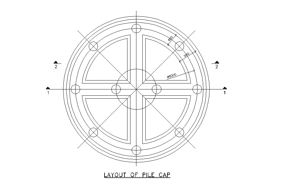 Layouts of pile cap details are given in this 2D Autocad DWG drawing file. Download the 2D Autocad file.