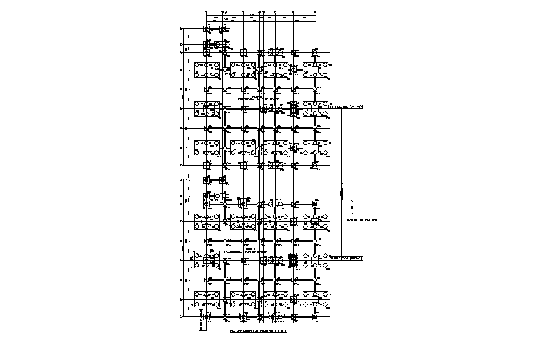 Boiler structural pile cap layout details are given in this AutoCAD 2D DWG drawing file. Download the 2D Autocad file.