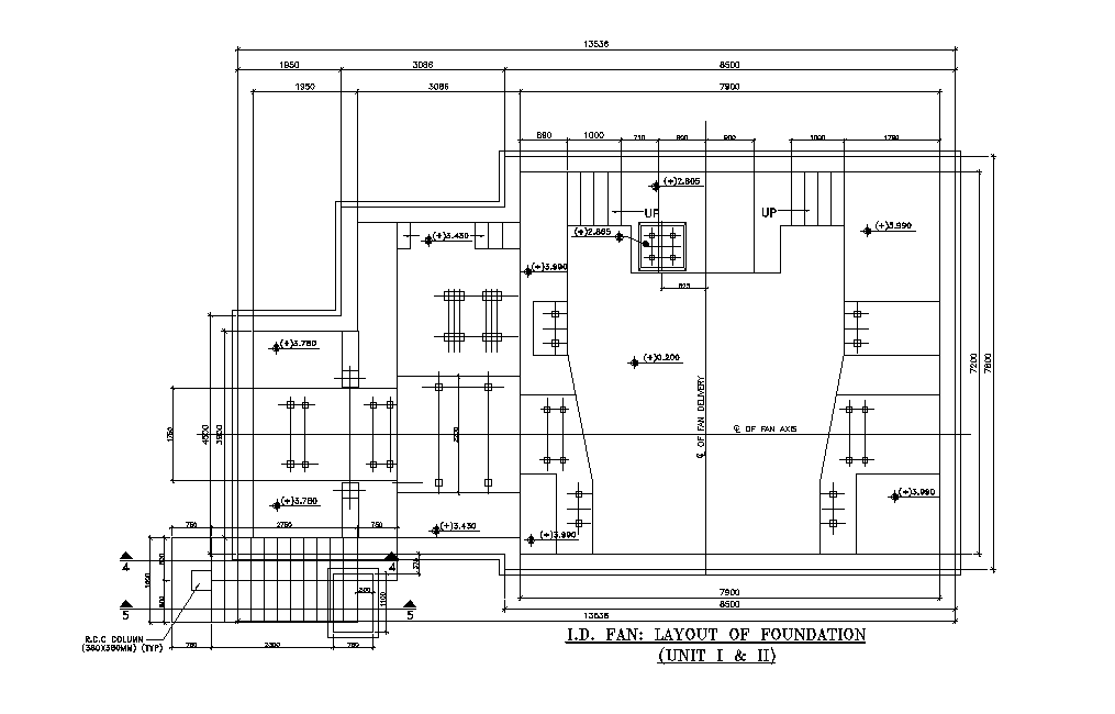 RCC column and layout of foundation details has given in this AutoCAD 2D DWG drawing file. Download the Autocad 2D DWG drawing file.