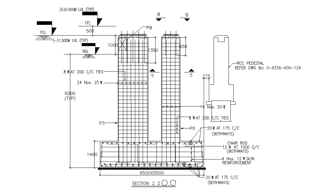 Section of foundation details has given in this 2D AutoCAD DWG drawing file.  Download the 2D Autocad DWG drawing file.