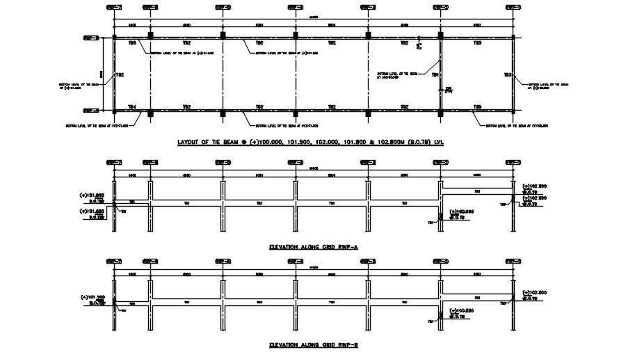 The layout of the tie-beam detail drawing stated in this Autocad file. Download this 2d AutoCAD drawing file.