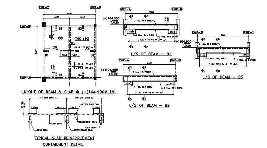 the layout of the beam and slab detail drawing separated in this Autocad file. Download this 2d AutoCAD drawing file.