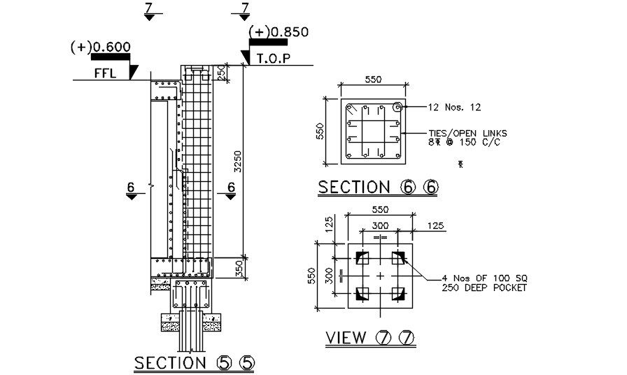 The reinforcement section detail stated in this Autocad file. this file consists of steel bar detail and section detail of column detail given with dimensions, and material specification clearly shown in this cad drawing file.this can be used by architects and engineers. Download this 2d Autocad drawing file.