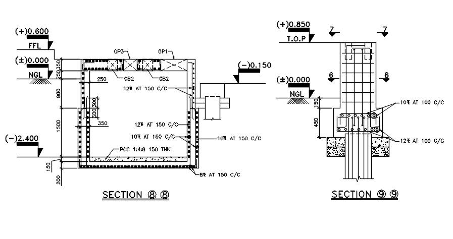 Section detail of reinforcement detail specified in this Autocad file. this file consists of reinforcement detail with steel bar detail and section detail of column detail given with dimensions, and material specification clearly shown in this cad drawing file.this can be used by architects and engineers. Download this 2d Autocad drawing file.