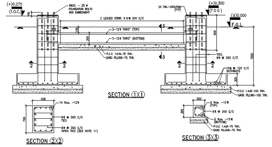 The reinforcement section detail drawing stated in this Autocad file. this file consists of footing detail reinforcement with the dimensions and specifications.given in it. This can be used by architects engineers and engineers. Download this 2d Autocad drawing file.