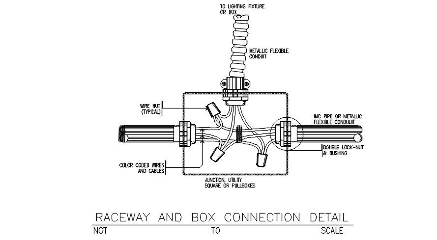 Raceway and box connection detail drawing defined in this Autocad file. Download this 2d AutoCAD drawing file.