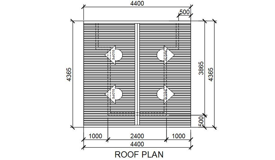 The roof plan detail drawing is given in this Autocad file. this file consists of 4400 x 4365 size of roof detail given with dimensions, and specifications in it. this can be used by civil engineers and engineers. Download this 2d Autocad drawing file.