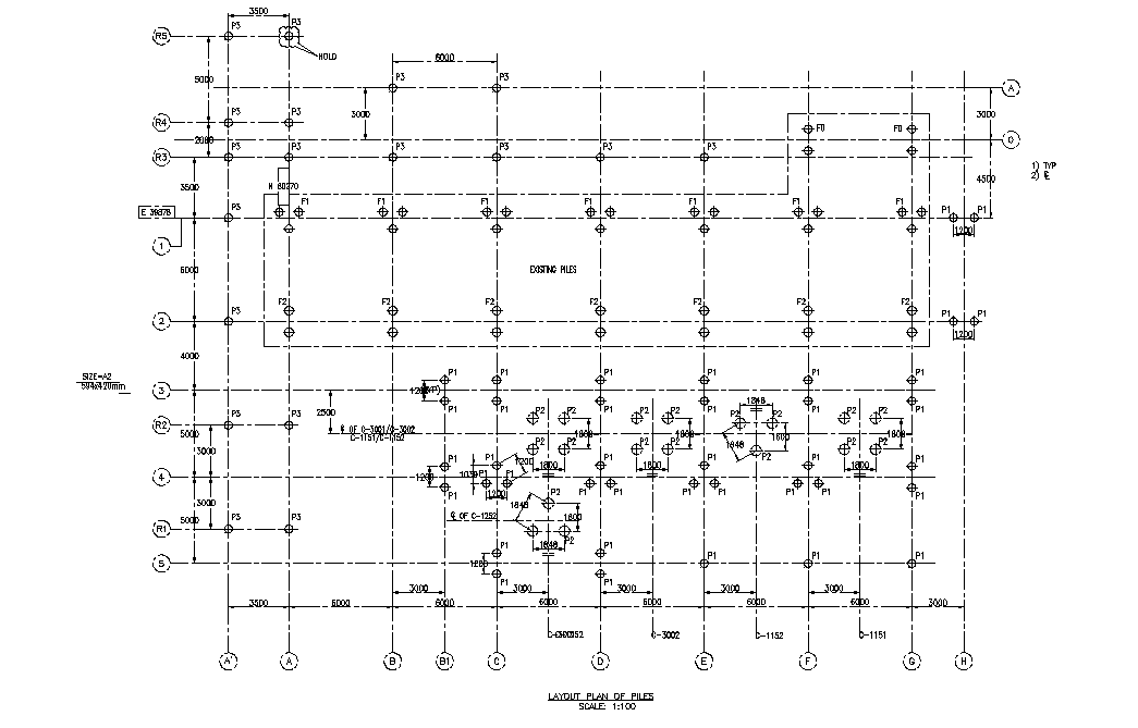 Layout plan of pile details are given in this 2D Autocad DWG drawing file. Download the 2D AutoCAD DWG drawing file.