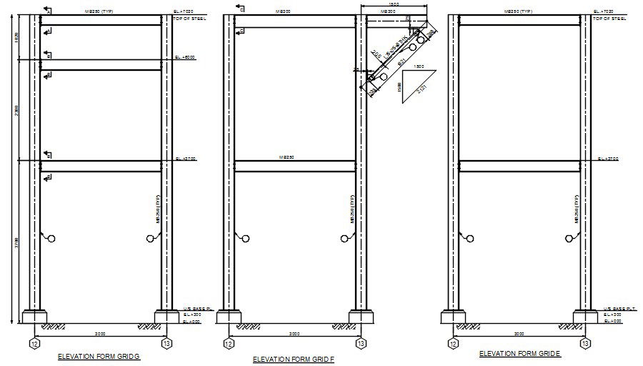 Elevation of the ladder details are given in this 2D Autocad DWG drawing file. The height of the ladder is 6m and width is 3m. Base is mentioned in this drawing file. Steel is provided at the top of ladder. Thickness of plate is L75x75x6mm. Download the 2D Autocad DWG drawing file. Thank you for downloading 2D AutoCAD DWG drawing file and other CAD program files from our website.