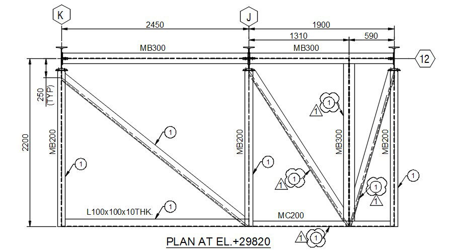 4.35mx2.2m size of ladder plan detail is given in this 2D Autocad DWG drawing file. MB 150, MB 200, MB250 and M300 section are used. Size of the angle section is 75x75x6mm thickness. Thank you for downloading 2D AutoCAD DWG drawing file and other CAD program files from our website.