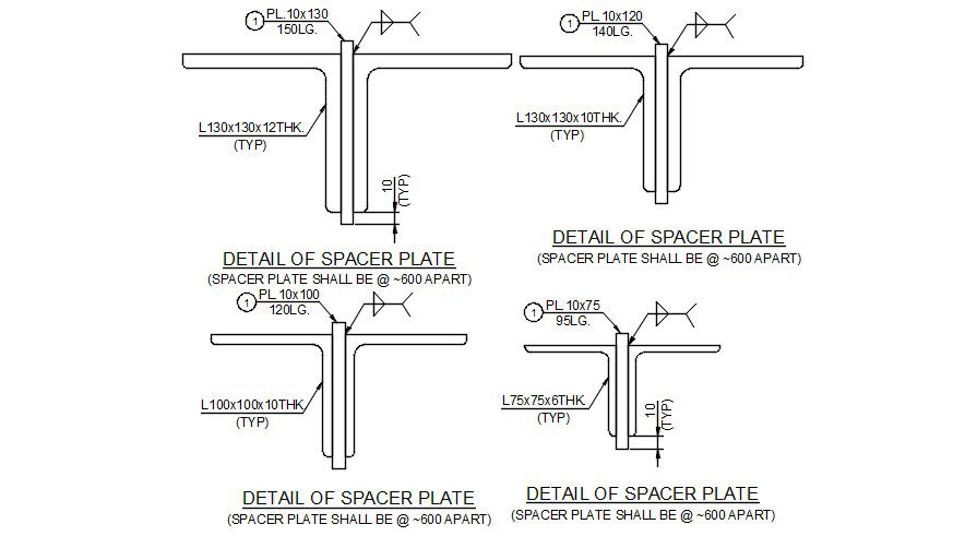 Spacer plate details are given in the form of 2D Autcad DWG drawing file. Download the 2D Autocad DWG drawing file.