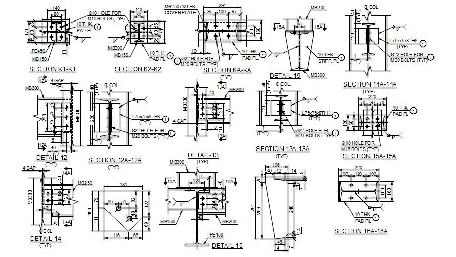 The file consists of connection details of ladder in the form of 2D Autocad DWG drawing. Download the 2D Autocad DWG drawing file.