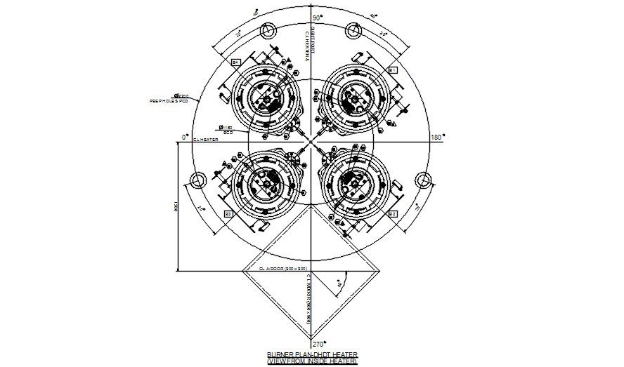 Fly ash plant burner plan of DHDT heater detail is given in this 2D Autocad DWG drawing file. At entrance, the door is provided. This view is from the inside heater. Cl heather and peep holes are mentioned in this model. This is an 360degree process. Thank you for downloading 2D AutoCAD DWG drawing file and other CAD program files from our website.