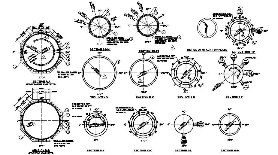 Section view of the stack bottom base and top base plate details are given in this 2D AutoCAD DWG drawing file. Download the 2D Autocad DWG drawing file.