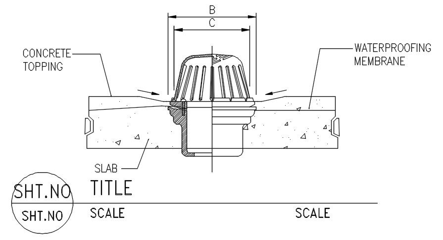 Slab detail drawing stated in this AutoCAD file. this file consists of waterproofing membrane, concrete topping, with dimensions, and material specification detail in this AutoCAD drawing file. this can be used by architects and engineers. Download this 2d AutoCAD drawing file.
