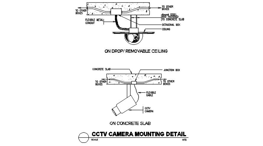 Camera detail drawing specified in this AutoCAD file. this file consists of flexible metal content, concrete slab, and junction box with dimensions and specification detail in this AutoCAD drawing file. this can be used by architects and engineers. Download this 2d AutoCAD drawing file.