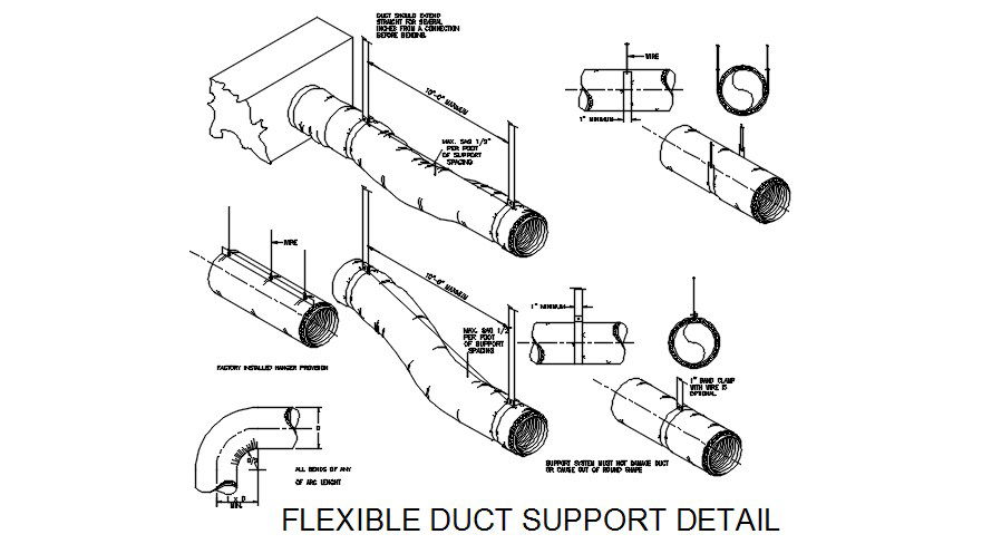 The flexible duct support detail specified in this AutoCAD file.Download this 2d AutoCAD drawing file.
