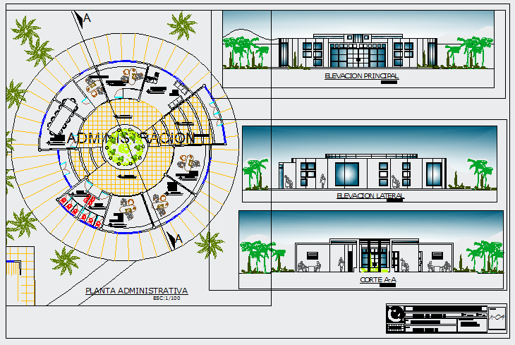 This is a Administrative unit of design workshop with plan drawing design,Furniture layout drawing and All side elevation North,south East, West side elevation design in this auto cad file drawing.