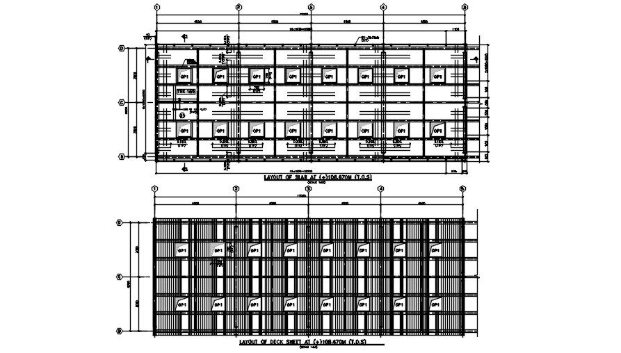 AutoCAD Layout Plan of Slab and Deck sheet of high rise structure is described. structural elements, sectional details, dimensions of the slab and deck sheet are specified according tho the standard referrals. Download the DWG file from our website, for enhanced legends.