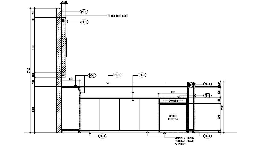 Kitchen section detail drawing presented in this AutoCAD file. this file consists of kitchen section detail, joinery detail, drawer, and shutter detail given with dimensions and specifications. this can be used by architects and engineers. Download this 2d AutoCAD drawing file.