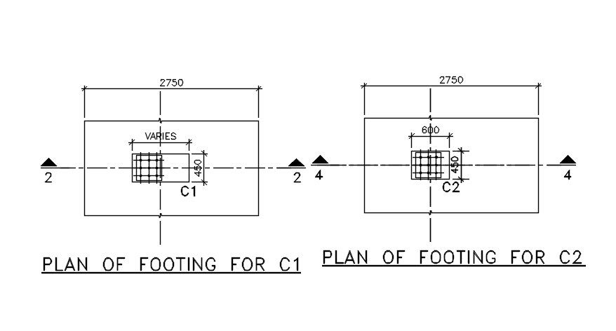 The plan of footing column AutoCAD drawing that shows 600X450 mm thickness size also has dimensions and material specification detail. Thank you for downloading the AutoCAD file and other CAD program from our website.