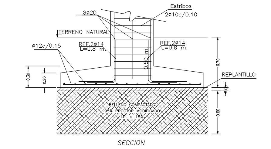 Reinforcement section detail drawing presented in this AutoCAD file. this file consists of sand filling detail, PCC detail, steel bar detail, with dimensions and material specification in this file. this drawing made by a 1:100 scale presented in it. this can be used by architects and engineers. Download this 2d AutoCAD drawing file.