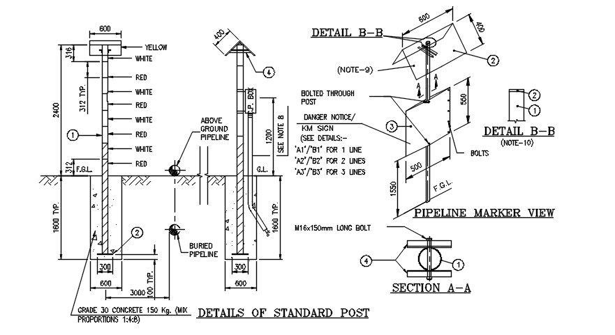 A detail of standard post has given in this 2D Autocad DWG drawing file. Download AutoCAD DWG drawing file.
