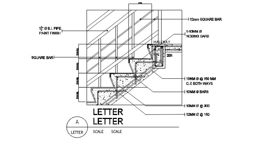 Staircase detail drawing in this AutoCAD file. Download this 2d autocad drawing file.