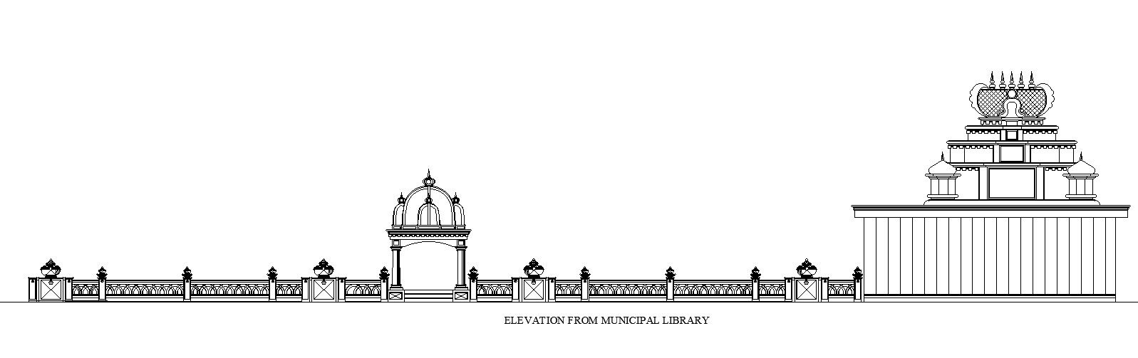 Elevation from the municipal temple library Architectural drawing is provided in this Autocad drawing file. municipal temple library is provided in this drawing. This amazing drawing is useful for people searching for temple architectural drawings. For more beautiful drawings search more on the cadbull website. Thank you so much for downloading Civil and Architectural drawings from the cadbull website.Download Now an Autocad drawing file.