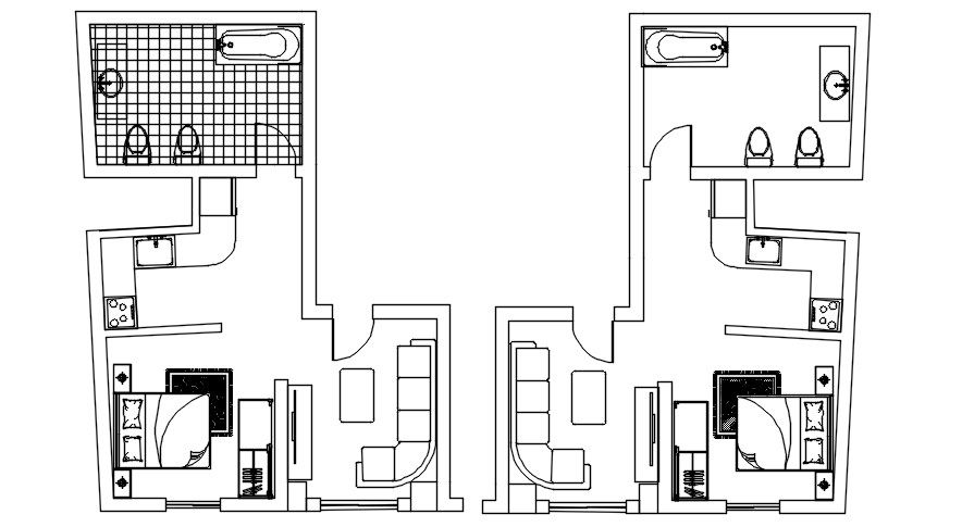 Apartment floor plan detail drawing provided in this AutoCAD file. in this file, the living room, bedroom, wash area, toilet detail drawing given with furniture layout in this file. this can be used by architects and engineers. Download this 2d AutoCAD drawing file.