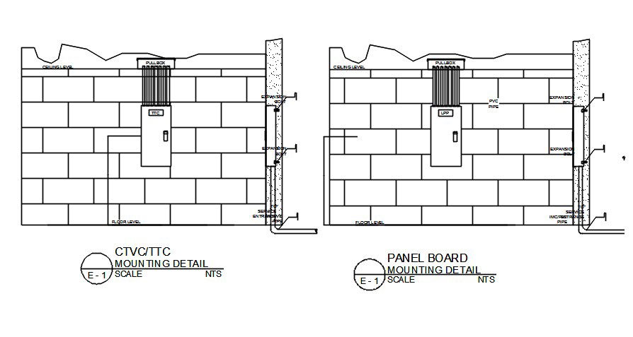 Mounting detail drawing separated in this AutoCAD file. this file consists of, panel board used, pull box detail given, ceiling level mentioned with the proper specification. this can be used by architects and engineers. Download this 2d AutoCAD drawing file.