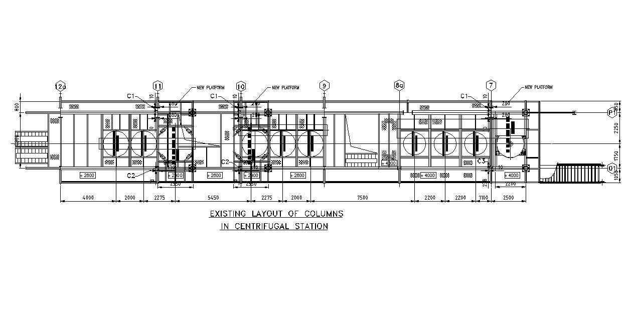The centrifugal station CAD drawing that shows existing layout of column and new platform design with dimension detail. also its explain the common structural shapes used in building materials. Thank you for downloading the AutoCAD file and other CAD program from our website.
