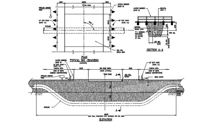Typical rig crossing detail drawing separated in this AutoCAD file.  Download this 2d AutoCAD drawing file.