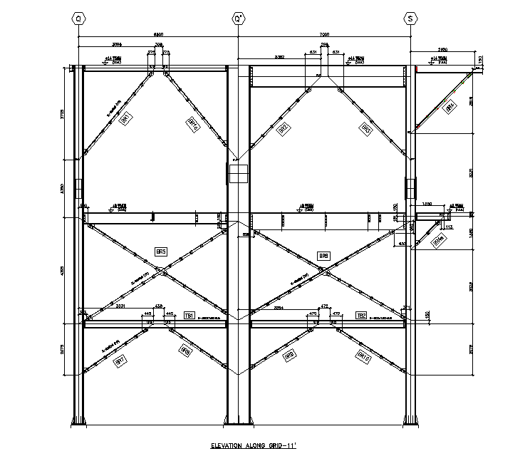 Elevation along the grid detail drawing provided in this AutoCAD file. Download this 2d AutoCAD drawing file.