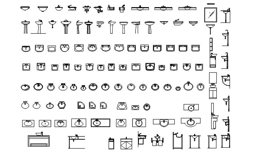 Washbasin blocks the detail drawing defined in this AutoCAD file. Download this 2d AutoCAD drawing file.