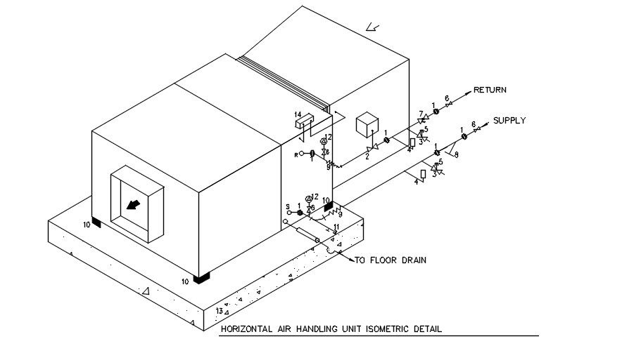 Isometric detail of horizontal air handling unit is given in this 2D Autocad DWG drawing file. Download the 2D autocad file.