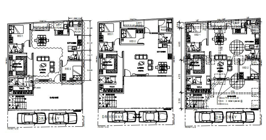 Bungalow detail drawing presented in this AutoCAD drawing file. this file consists of a living room, kitchen detail, bedroom detail, detail drawing given with dimensions, and area specifications. This can be used by architects and engineers. Download this 2d AutoCAD drawing file.