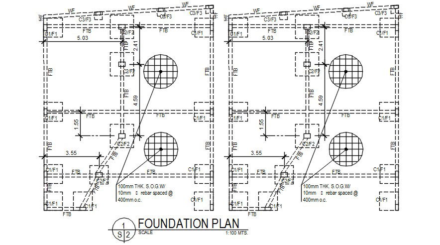 Foundation detail drawing specified in this AutoCAD drawing file. this file consists of detail footing drawing presented here with dimensions, and area specifications. This can be used by architects and engineers. Download this 2d AutoCAD drawing file.