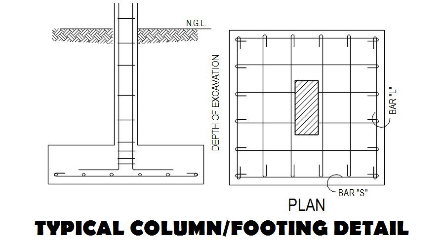 Typical column footing detail drawing in this AutoCAD file. Download this 2d AutoCAD drawing file.