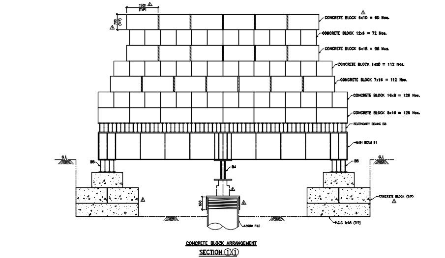 AutoCAD plan describing concrete block arrangement in a rail network. The concrete block system has been used for retaining walls on the rail network as its strength and soil retaining capabilities keeps both the train and track safe whilst. Download the DWG file from our website for detailed analyse.