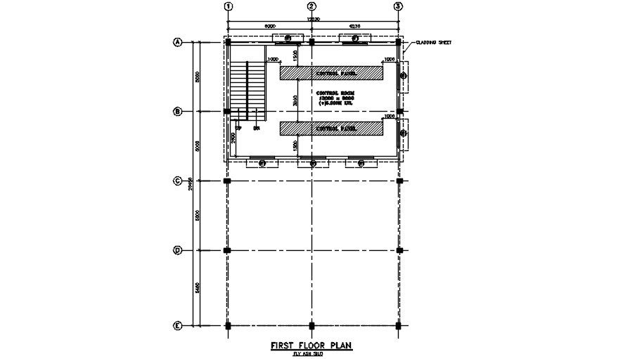 Control room first-floor plan detail drawing in this AutoCAD file. this file consists of control room services detail given and staircase detail drawing given with dimensions and area specifications. This can be used by architects and engineers. Download this 2d AutoCAD drawing file.