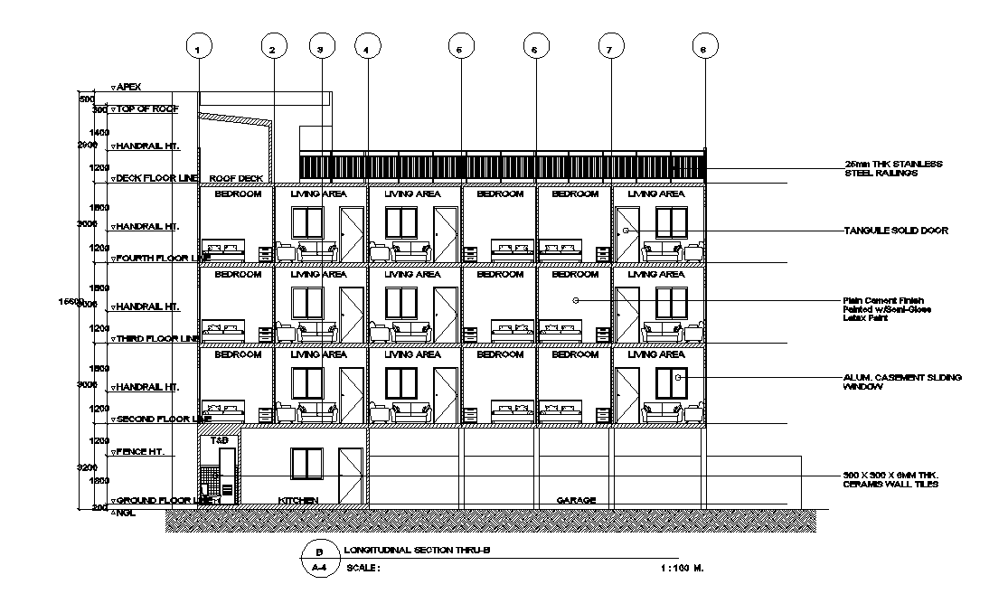 Section detail of the residence apartment drawing presented in this AutoCAD file. this file consists of multi-storied section detail with door window detail given and with dimensions and area specification. this can be used by architects and engineers. Download this 2d AutoCAD drawing file.