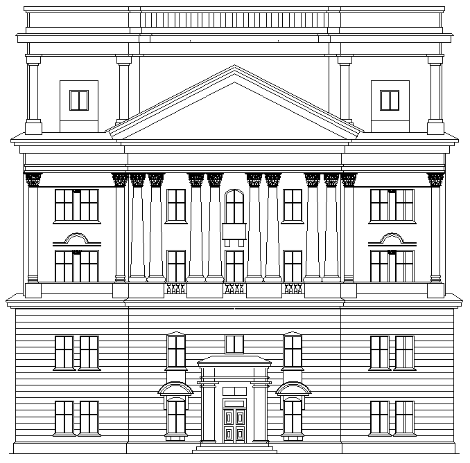 An elevation of the church detail is given in this 2D Autocad DWG drawing file. Download the 2D Autocad DWG drawing file.