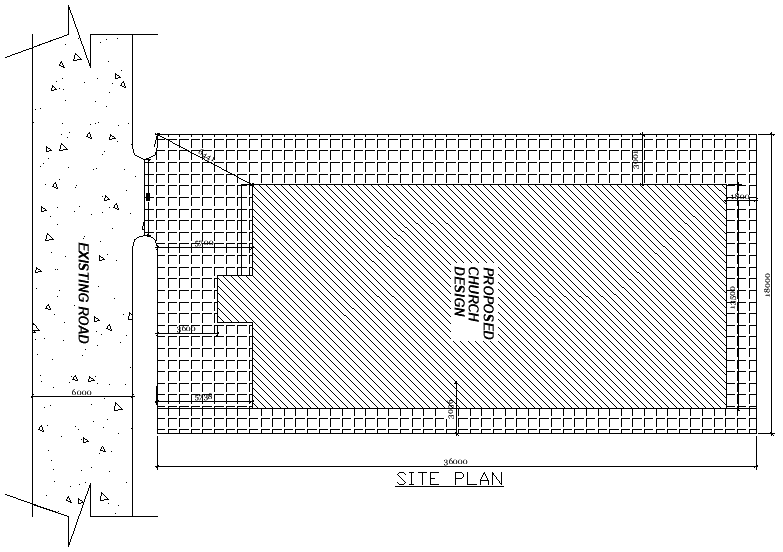 Site plan of amazing church design is given in this 2D Autocad DWG drawing file. The length and breadth of the size is 36m and 18m respectively. This is proposed church design. This site plan is proposed with one side road face. Download the 2D Autocad DWG drawing file. Thank you for downloading the 2D AutoCAD DWG drawing file and other CAD programs from our website.